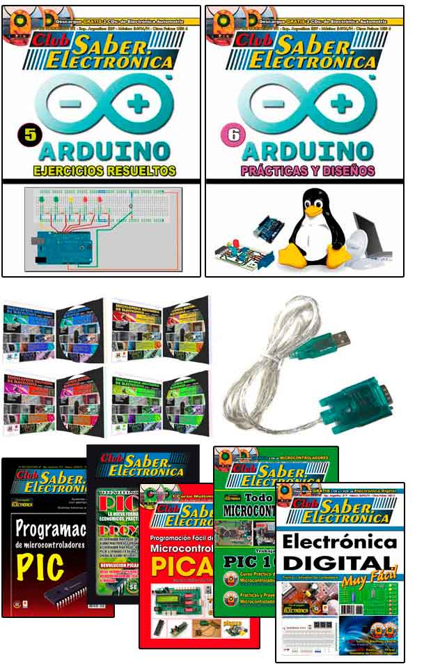 Pack: Si ya sabe ARDUINO y tiene cualquiera de los kit de desarrollo ARDUINO; este paquete educativo es ideal, porque le enseña a vincular ATMEL, PIC y PICAXE. Incluye curso de PICAXE, Curso de Programación C, un Conversor RS232 a USB que genera un puerto "real" (no virtual). Contiene un simulador completísimo para que pueda verificar en su PC las prácticas con ARDUINO, antes de montar los sistemas prácticamente. Contenido: Precio de venta al público: $699 |